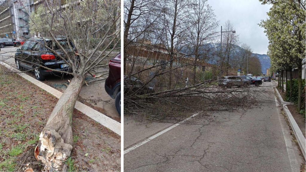 Raffiche fino a 110 chilometri orari, ecco gli alberi caduti per vento a Trento. Fernandez: «Servono boschi urbani capaci di resistere agli eventi estremi»