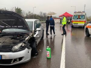 Momenti di apprensione, nella tarda mattina di oggi, per un incidente avvenuto lungo la Bretella ai Fiori, a Rovereto, dove si è verificato un violento scontro tra due auto.